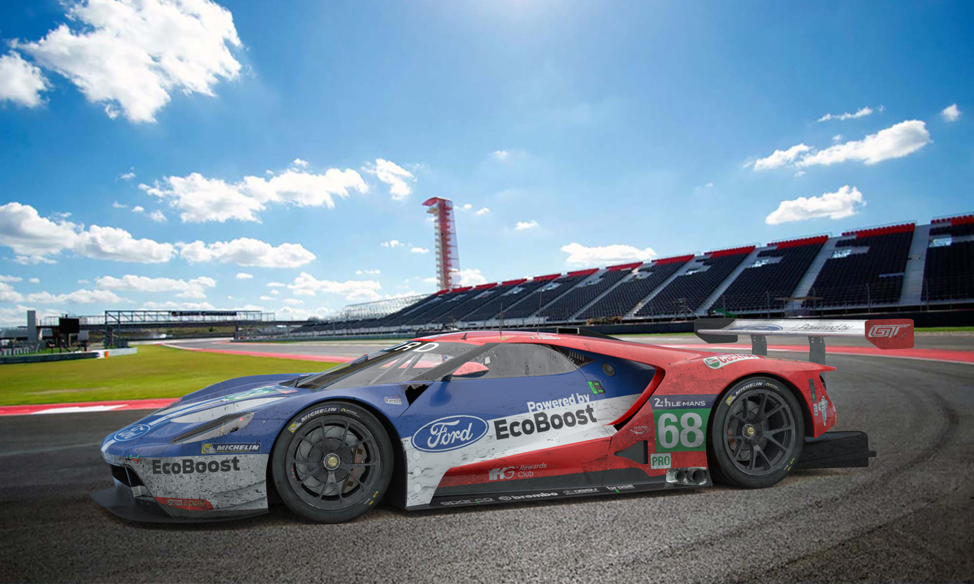 Rendered model of #68 Ford Lemans winning GTE Pro post race.